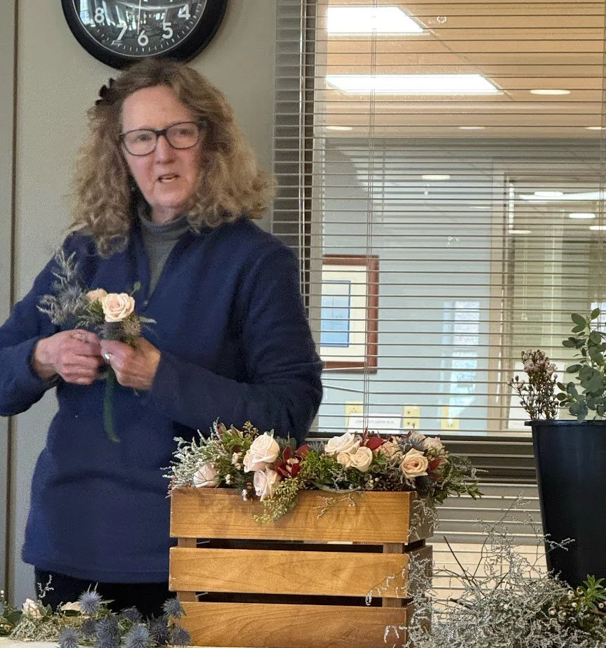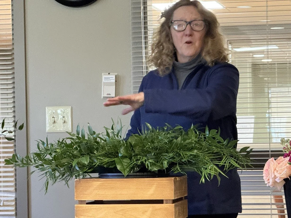 This meeting’s presentation was Seasonal Wreaths Three Different Ways was Mary Beth Hayes of Semper Virens Flowers.
